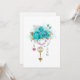 Chave de ouro antiga com rosas de turquesa de tendência, decoradas com folhas de ouro branco e miçangas cor-de-rosa e azuis. Cor agradável. Rosas de turquesa. Ouro branco. Tifania azul.