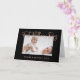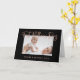 Este simpático cartão de Dia das Mães para a primeira vez mãe apresenta um fundo preto escuro e uma tipografia moderna em falso rose gold que diz "Primeiro Dia das Mães". Adicione uma foto dela e do bebê, com espaço para personalizar com nomes e ano.