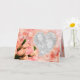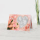 Soft pink and peach tones create a romantic mood with rose petal background and pretty bouquet. Add a special photo in the cut out heart area. Lovley inside verse and areas for you to customize with your text.