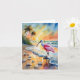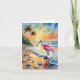 Este cartão apresenta um retrato de aquarela de um colar roseado caminhando pela praia no pôr do sol.