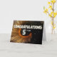 Este é um cartão comemorativo de 5 do aniversário de um funcionário com um efeito rotativo sobre um fundo preto com algumas cinzas/estrelas azuis e de cor branca. Há também o texto "PARABÉNS, escritos em simulação em camadas com pontos decorativos. Por baixo de "PARABÉNS" está o texto "5 ANOS". NOTA - O efeito de brilho dourado neste design é simulado digitalmente no trabalho de arte. Não será usada nenhuma falha real no fazer desta placa. Design de Natalie Kinnear.