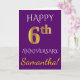 Este simples e personalizado design de cartão de felicitações de aniversário de casamento apresenta a mensagem "FELIZ 6º ANIVERSÁRIO", com o "6º" tendo uma aparência semelhante ao ouro. A frente também apresenta um nome personalizado e um fundo roxo. O interior apresenta uma mensagem de felicitações de aniversário de casamento personalizada. Pode ser dado a um marido ou uma esposa em celebração do sexto aniversário de casamento do casal. [~Z0000089]