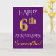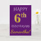 Cartão Roxo, Dourado Falso 6º Aniversário de Casamento +