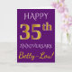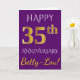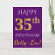 Este simples e personalizado design de cartão de felicitações de aniversário de casamento apresenta a mensagem "FELIZ 35º ANIVERSÁRIO", com o "35º" tendo uma aparência semelhante ao ouro. A frente também apresenta um nome personalizado e um fundo roxo. O interior apresenta uma mensagem de felicitações de aniversário de casamento personalizada. Poderá ser dado ao marido ou à esposa em celebração do trigésimo quinto aniversário de casamento do casal. [~Z0000089]