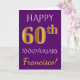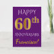 Cartão Roxo, Dourado Falso Aniversário de 60 Anos de Casa