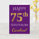 Cartão Roxo, Falso Dourado Aniversário de 75 Anos de Casa