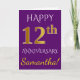 Cartão Roxo, Falso Ouro 12º Aniversário de Casamento + No