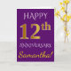 Este simples design de cartão de saudação de aniversário de casamento personalizado apresenta a mensagem "FELIZ 12º ANIVERSÁRIO", com o "12º" tendo uma aparência semelhante ao ouro falso. A frente também apresenta um nome personalizado e um fundo roxo. O interior apresenta uma mensagem de saudação de aniversário de casamento personalizável. Pode ser dado a um marido ou uma esposa em celebração do décimo segundo aniversário de casamento do casal. [~Z0000089]