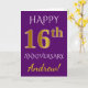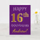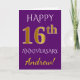 Cartão Roxo, Falso Ouro Aniversário de 16 Anos de Casamen