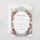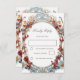 This modern wedding response card features a 3D floral frame in blue red and yellow on a white background.