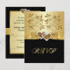 Este elegante cartão de resposta de aniversário de casamento de 50 anos com flores pretas e douradas tem uma fita e um laço com aparência metálica dourada IMPRIMIDOS e um par de corações unidos com lantejoulas e joias IMPRIMIDOS que combinam com o convite de aniversário de casamento de 50 anos mostrado abaixo. Todo o texto é personalizável, assim como as opções de papel. ****POR FAVOR, OBSERVE que o papel dourado metálico é um dourado muito escuro e brassy e alterará severamente as cores do design, então eu NÃO sugiro selecionar esse papel. O design é mostrado aqui em papel básico, mas ficaria muito bonito no papel metálico gelo, que tem um brilho opalescente sutil que adicionará um toque agradável ao design. O papel de feltro é um papel grosso e texturizado que também daria resultados luxuosos. O linho esfriará o design e é um papel leve com linhas finas que você pode não gostar. ALÉM DISSO, se você mudar as fontes ou tamanhos de fonte, seu texto pode não caber mais corretamente. A Zazzle não editará nada para erros de digitação, alinhamento ou qualquer outra coisa, e eu não verei seu convite. Tudo será impresso como aparece na sua tela. Se você precisar de ajuda com o convite, por favor entre em contato comigo ANTES de fazer o pedido. Este convite