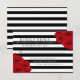 A coleção de casamento chic moderno luxo apresenta um fundo clássico de listras pretas e brancas acentuado com belas rosas vermelhas rubi.
