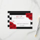 A coleção de casamento chic moderno luxuoso apresenta um fundo clássico de listras pretas e brancas acentuado com belas rosas vermelhas rubi.