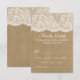 Esta coleção rústica de casamento é uma design impressionante que apresenta um adorável fundo de efeito kraft rústico com um romântico efeito de renda branca vintage. Essas cartas de RSVP podem ser personalizadas para sua ocasião especial e podem fazer as cartas de inserção perfeitas para um casamento, chá de panela, festa de noivado, festa de aniversário e muito, muito mais. Itens de casamento correspondentes podem ser encontrados na coleção.