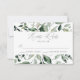 Cartões de RSVP de casamento botânico elegantes, com cor d'água luxuosa e verde, junto à carta, com fundo branco. Personalize os cartões de RSVP do casamento verde moderno com sua data de resposta e o costume aceita/declina a redação. Projetado para coordenar com nossa coleção de casamento Abundant Greenery.
