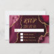 Crie uma primeira impressão ousada e elegante com este cartão de RSVP de mármore de ágata vermelha-bordô e dourada, apresentando tons ricos de joias, texturas de pedra orgânica e detalhes dourados cintilantes perfeitos para celebrações de outono e inverno. As ricas tonalidades de vinho e carmesim combinadas com detalhes metálicos dourados criam um visual dramático e refinado ideal para um RSVP de casamento, RSVP de aniversário ou RSVP de Sweet Sixteen com estética formal, moderna ou glamorosa. Inspirado em padrões naturais de ágata e geodo, este design luxuoso combina perfeitamente com eventos sazonais sofisticados e é totalmente personalizável para combinar com seus detalhes, adicionando sofisticação atemporal às celebrações de outono e inverno.