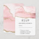Placa RSVP com um design elegante e moderno. Cores de água rosadas cor-de-rosa com um aspecto sutil de agata de mármore e fita de ouro com brilho dourado colado no meio.