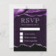 Cartão RSVP Agato de mármore com brilho prateado e roxo