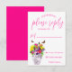 O amor está florescendo! Coleção de casamentos florais vibrantes com um buquê num vaso de mármore rodeado por borboletas e acompanhado por tipografia de guião fuchsia.