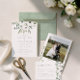 Design apresenta um buquê de verde-aquarela, eucalipto, sábio e anêmonas desenhados à mão especialmente para a coleção de convites para casamentos do "Evergreen Garden". Para alterar os detalhes, clique em "Personalizar". Veja o link de coleção nesta página para ver todos os itens correspondentes neste belo design ou veja a coleção aqui: https://cutt.ly/nbKwTgB