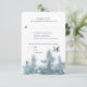 Cartão de RSVP de aquarela rústica de fazenda com características efêmeras da floresta, árvore de pinheiro e coruja e tipografia clássica. O outro lado é uma grande coruja em aquarela salpicada com sobreposição floral botânica verde em um azul marinho escuro. Itens correspondentes a este cartão de RSVP.