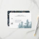 Fazenda rústica casa de campo aquarela efêmera apresenta floresta pinheiro e coruja e tipografia clássica cartão de RSVP. O outro lado é uma grande coruja de aquarela salpicada com verde botânico floral sobrepondo um azul naval escuro. Itens correspondentes com este cartão de RSVP.