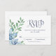 Cartão RSVP Aquarela Flores em Azul Poeirento e Azul Marinho