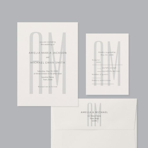 Pair with the matching architectural wedding invitation, details card, menu, and program to complete the full minimalist monogram suite.