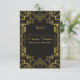 Cartão RSVP Art Deco Glamorous Dourado no Casamento Negro