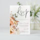 Autumn Pumpkin Watercolor Código QR. Belos florais coloridos de outono e abóbora correm do canto inferior esquerdo e RSVP está em um roteiro elegante. O resto do texto que você pode personalizar facilmente. Adicione seu código QR à sua página de resposta no site do casamento no verso substituindo o código QR na amostra. Você pode criar códigos QR gratuitamente on-line. Basta pesquisar "Criador de código QR" e muitas opções surgem para criar gratuitamente. Uma lavagem aquosa de cor suave está no fundo.