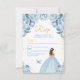 Cartão RSVP Azul claro e Dourado Cabelo castanho Princesa