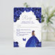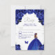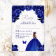 Este elegante e glamouroso cartão rsvp apresenta uma bela princesa com cabelo castanho num vestido azul escuro. O texto combina o script manuscrito e as fontes sans serif modernas para um aspecto elegante e sofisticado. Os arranjos florais, borboleta e confete prateado criam a mistura perfeita de rústico e chic. Perfeito para uma doce festa ou festa de aniversário de dezesseis. Gráficos por www.etsy.com/uk/shop/SunflowerDayLove