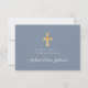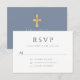 Cartão RSVP Azul Poeira Cruz Religiosa Menino Primeira Comunhã