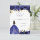 Cartão de Resposta Azul Real Floral Princesa Quinceanera Dourada