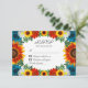 Elegant and colorful floral design for a backyard summer event. Features teal blue roses, white daisies, red wildflowers and sunflowers