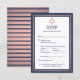 O marinho de elogio e o bar rosa mitzvah convidam-na com elegantes cartões de resposta RSVP modernos. Toda a redação neste modelo de cartão é simples de personalizar ou excluir. Inclui opções de refeições, alergias à comida, solicitação de música e opção de resposta via site ou email. O design apresenta uma estrela falsa de folha de papel de David, marinho azul, branco e rosa-rosa, borda dourada, e a típica tipografia de arte de safra. Esta nota de anúncio é uma forma moderna e na moda para pedir aos amigos e à família que se submetam à RSVP da sua próxima celebração especial. Observe que o ouro rosa é impresso a cores, não em folhas metálicas. Mazel Tov!