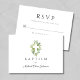 Cartão RSVP de Batismo Botânico Religioso Cruzado Verde Personalizado Elegante.