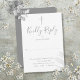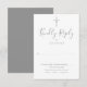 Uma placa RSVP na moda com uma elegante cruz prateada e tipografia quic prata. Ideal para batismo, batizar ou primeira comemoração sagrada. Projetado por Thisnotme©