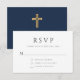 Cartão RSVP Batismo religioso azul-Marinho moderno