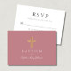 Cartão RSVP de Batismo Religioso Rosa Elegante Personalizado Designs de convite para batismo feminino cor-de-rosa disponíveis.