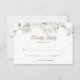 Cartão de confirmação de presença de bela flor branca com delicado enquadramento de flores da primavera detalhando seus dados em letras douradas elegantes. Personalize com os detalhes do seu evento especial. O verso apresenta pétalas de flores brancas espalhadas. Desenhado por Thisisnotme©