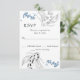 Este cartão RSVP de casamento apresenta dois peixes japoneses, brancos e negros, nadando em tons de preto, branco e azul.
