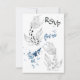 Este cartão RSVP de casamento apresenta dois peixes japoneses, brancos e negros, nadando em tons de preto, branco e azul. ^