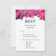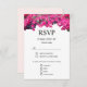 Cabeçalho floral vermelho magenta em placas RSVP de Casamento Branco. O verso tem fundo rosa de ouro leve. As flores Bougainvillea são acolhedoras e bonitas. Placas de Casamento Floral modernas.