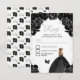 Esta elegante e glamourosa placa rsvp apresenta uma bela princesa com cabelo louro num vestido preto. O texto combina o script manuscrito e as fontes sans serif modernas para um aspecto elegante e sofisticado. Os arranjos florais, borboleta e confete prateado criam a mistura perfeita de rústico e chic. Perfeito para uma doce festa ou festa de aniversário de dezesseis. Gráficos por www.etsy.com/uk/shop/SunflowerDayLove