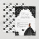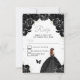 Este elegante e glamouroso cartão rsvp apresenta uma bela princesa com cabelo castanho num vestido preto. O texto combina o script manuscrito e as fontes sans serif modernas para um aspecto elegante e sofisticado. Os arranjos florais, borboleta e confete prateado criam a mistura perfeita de rústico e chic. Perfeito para uma doce festa ou festa de aniversário de dezesseis. Gráficos por www.etsy.com/uk/shop/SunflowerDayLove