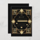 Cartão RSVP Black & Gold Art Deco Geometric Wedding