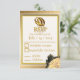 Cartão Elegante de ouro e RSVP branco que faz parte da coleção de Felicidade do Dia do Casamento. Você pode personalizar este cartão RSVP para seu dia especial.