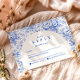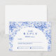 An elegant graduation celebration design featuring a delicate blue toile floral border inspired by classic European porcelain and vintage botanical prints. The intricate florals frame a clean arched center panel, creating a refined and timeless composition that highlights the graduate’s name and event details beautifully. Soft blue tones against a crisp ivory background give the design a sophisticated yet celebratory feel. Perfect for a stylish graduation gathering with a classic, romantic aesthetic.