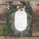 Este design apresenta um pinho verde rústico e buquê pinecone sobre fundo de carvão com flores brancas. É acentuado com uma camada branca de brilho para ilustrar a magia das belas férias de inverno. Perfeito para um Natal ou casamento no inverno. Este cartão faz parte do Boho Green Pine Winter Sparkle Wedding Suite, criado pela Simplesmente Farmhouse Press.